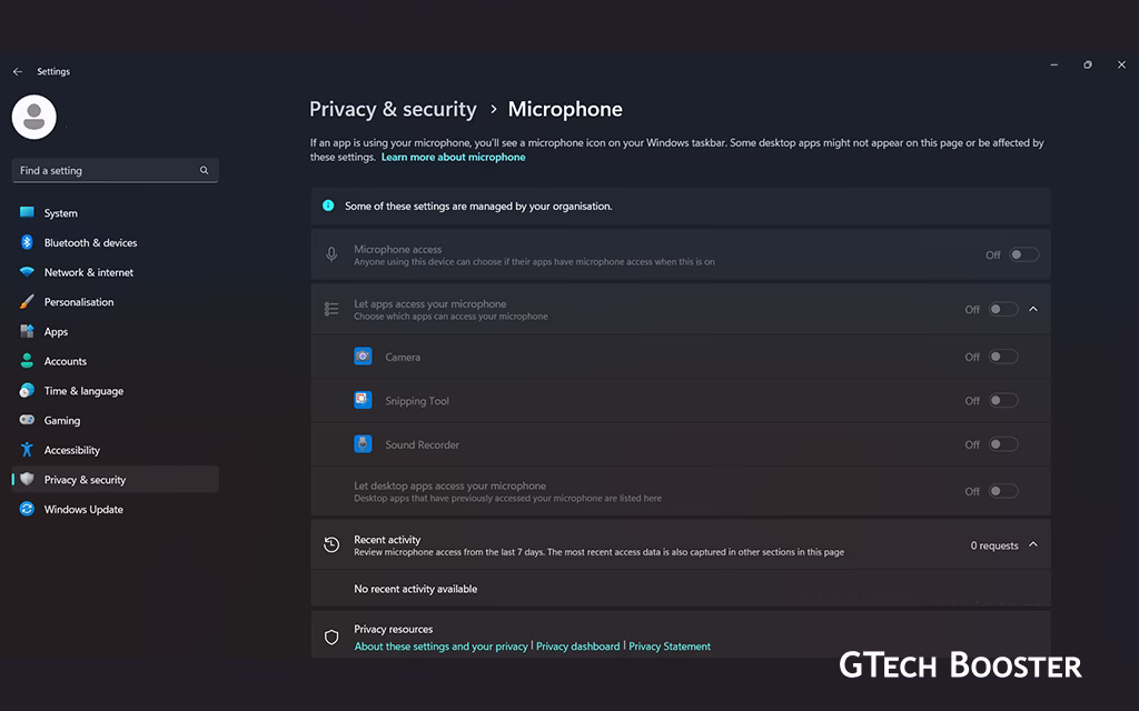 If your microphone is disabled with the message “managed by your organization,” it usually means a Group Policy or registry setting controlled by an administrator is preventing you from enabling it. This can happen on personal or oganisational PCs if certain privacy or anti-spying tools or administrator has modified system policies or registry keys.